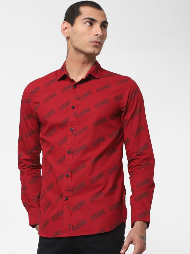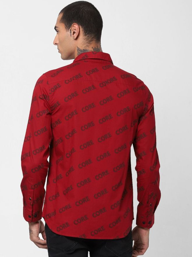 Red Full Sleeves Printed Shirt